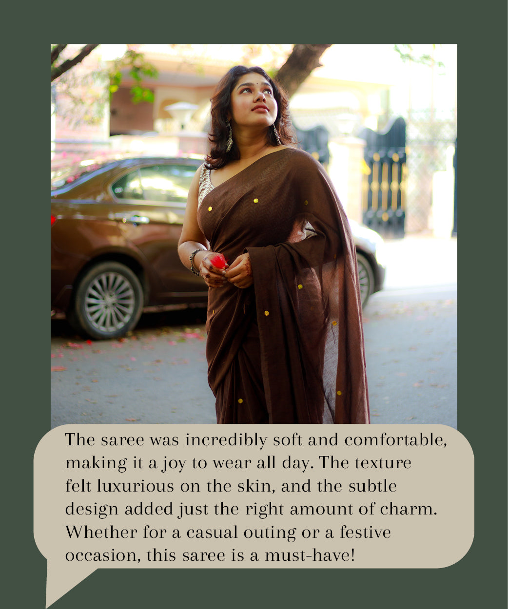 Our journey is inspired by a deep appreciation for an elite experience. We embarked on a mission to offer carefully selected, premium sarees that not only enhance style but also resonate with the desire to express yourself uniquely.